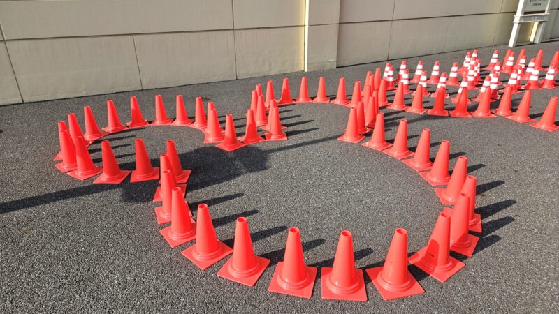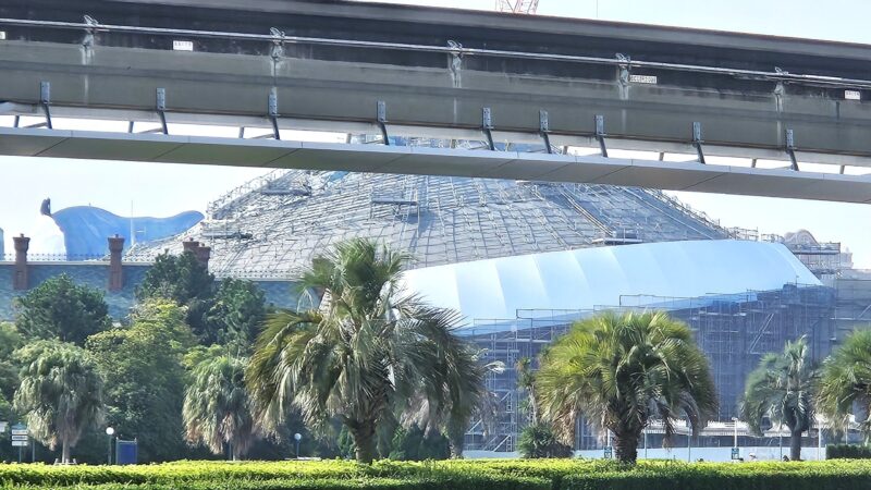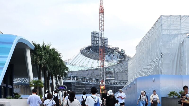 ミッキー型に並べられたパイロンと、リニューアル中の『スペースマウンテン』をパシャリ📷💡