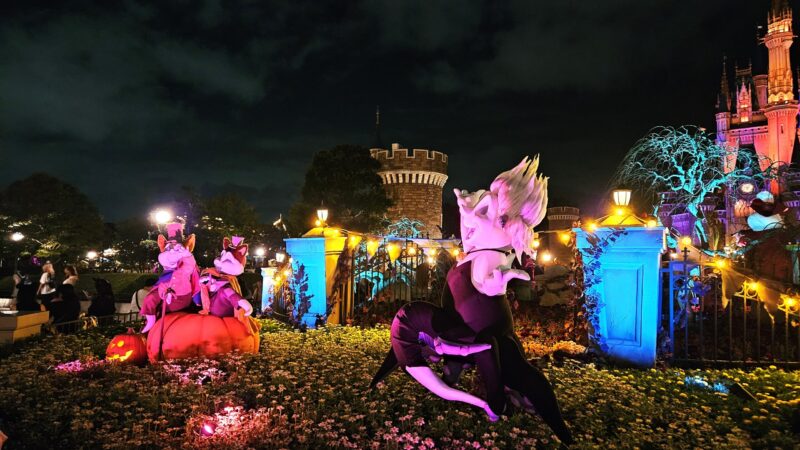 シンデレラ城前の庭園でもハロウィン限定の装飾がされてました🎃💡