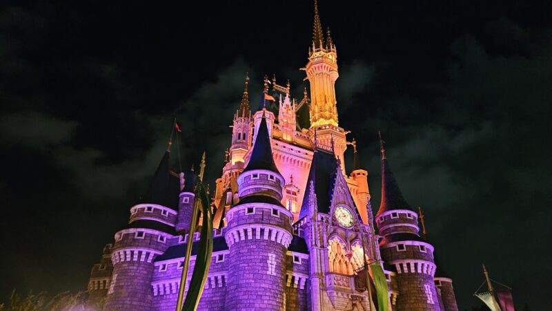 シンデレラ城も行く度に毎回撮っちゃってますが、この紫とオレンジの色合いがハロウィンっぽくていいですね😆